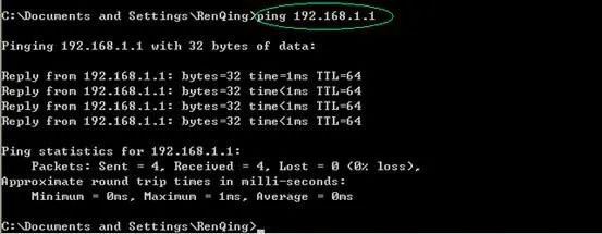 当获得了新的IP地址后,可以使用ping检查一下,一旦能ping通路由器了,说明电脑与路由器的连接已正常: