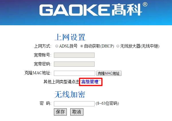 如果你办理的宽带是这种情况,那么在设置高科(GAOKE)路由器时,上网方式就应该选择:静态IP地址,详细设置方法如下所示